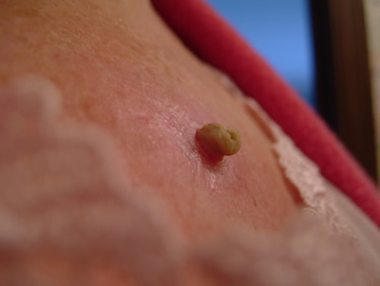 Growth came out! It had taken 5 days from start to finish. Nice little hole left, which over time has healed over leaving virtually nothing to see.